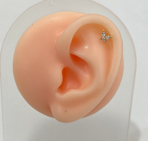 پیرسینگ استیل پیچی طرح جواهر پروانه نگین دار نقره ای و طلایی
