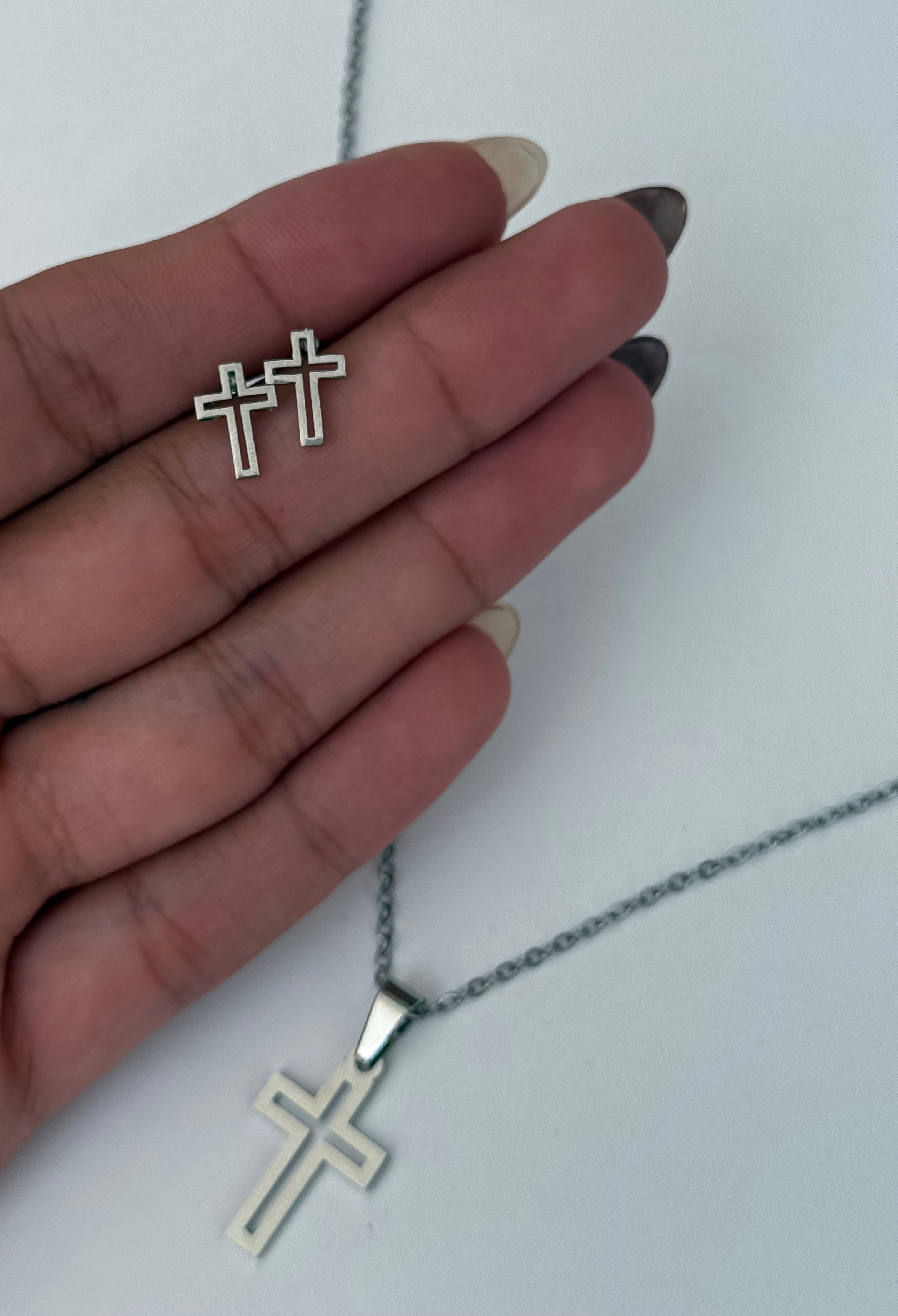 نیم ست استیل طرح صلیب ساده زنانه و دخترانه ارسال فوری