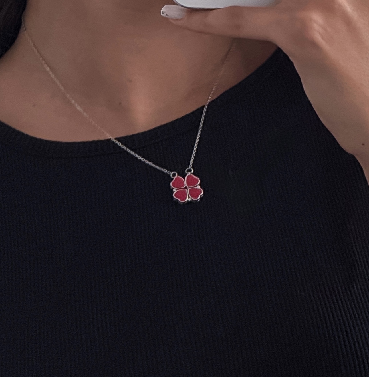 گردنبند استیل مگنتی طرح قلب و گل زنانه دو حالته