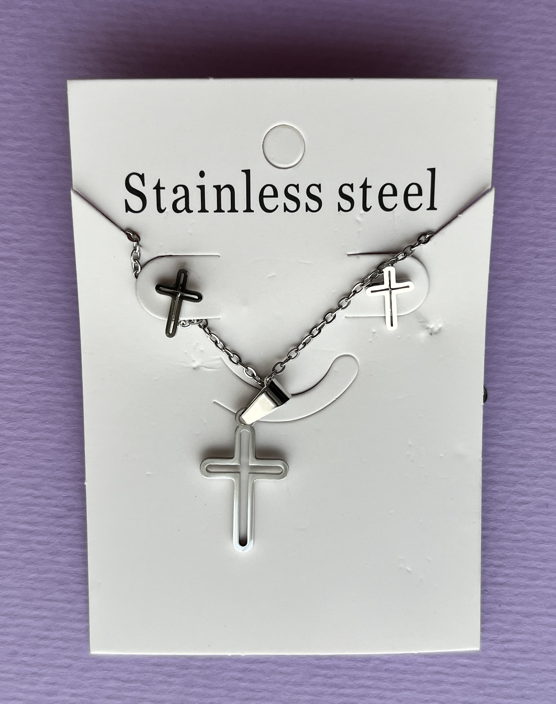زیورآلات نیم ست استیل زنانه طرح صلیب با گردنبند استیل و رنگ ثابت